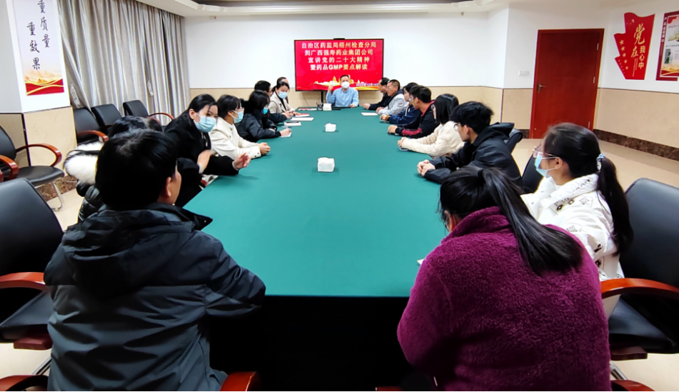 自治區(qū)藥監(jiān)局梧州檢查分局領導親臨廣西強壽藥業(yè)集團公司專題宣講黨的二十大精神并進行藥品GMP要點解讀