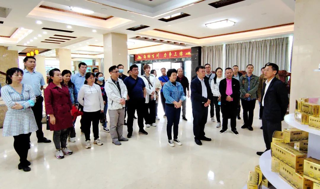 在集團(tuán)副總經(jīng)理唐專通的陪同介紹下,農(nóng)工黨梧州市委會一行參觀了民族藥、藥品、保健食品、消殺用品、六堡茶等展示區(qū),隨后舉行座談交流。