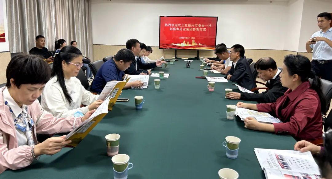 5月12日上午,農(nóng)工黨梧州市委會主委張崇貴、專職副主委兼秘書長劉萍率各支部負(fù)責(zé)人、部分骨干黨員代表到強(qiáng)壽藥業(yè)集團(tuán)參觀交流。